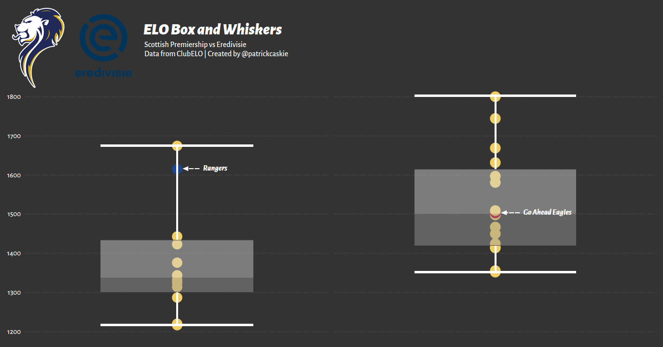 Below is an ELO box and whiskers plot, providing a rough benchmark for league strength and continental relevance, which helps us begin to answer the question, What were the dynamics Antman played under in the Netherlands?