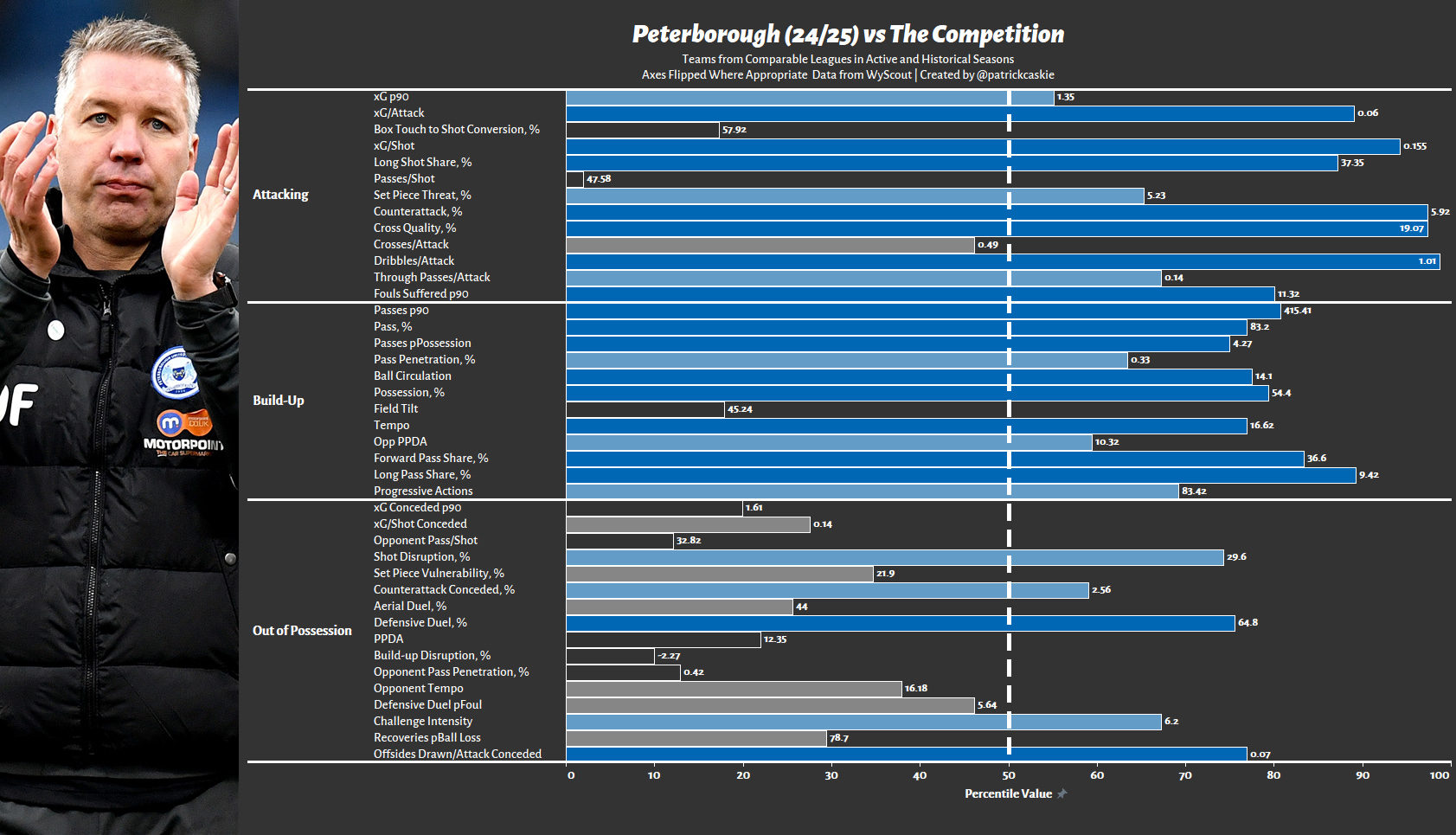 What should not surprise anyone familiar with Peterborough is that, despite poor performances in 24/25, when they had possession, they played relatively “good” football.