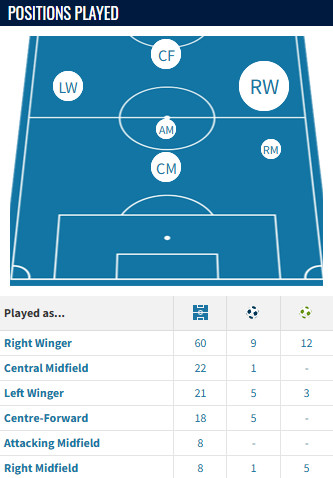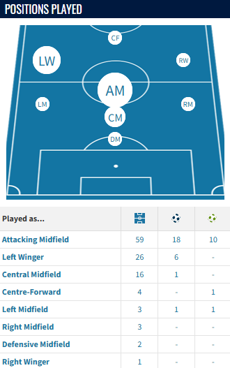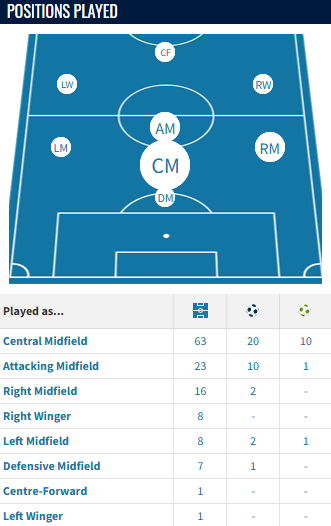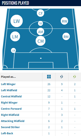 Zoom out, and more positions appear! I would expect to see the Finn at times play on the left, his primary position at FCN and even perhaps as a no.8, in a similar vein to how Celtic have deployed another former FCN winger, Benjamin Nygren.