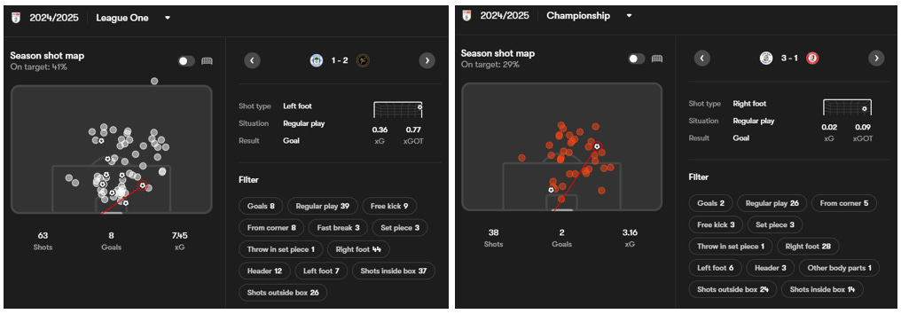 Like with Aasgaard we do not have access to ELO data for EFL L1; instead, we will have to use expected points to provide context to the quality of sides Aasgaard featured in 24/25. Peterborough managed 1.13 xPoints. Below is a list of teams in 24/25 that managed similar success.