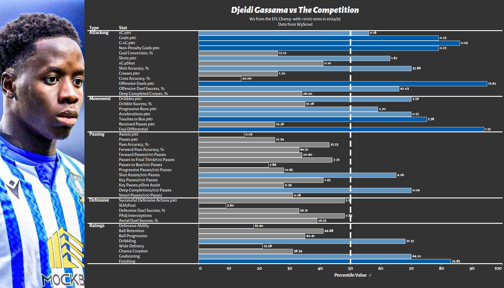 For those who can remember Djiga from 5000 words ago, you’ll probably be asking, did he keep the same data but make it blue to play a trick on the reader? No, I didn’t, instead it just happens, more likely than not purposefully, that Fernandez and Djiga profiles similarly, maybe not like twins, but like brothers or close cousins.