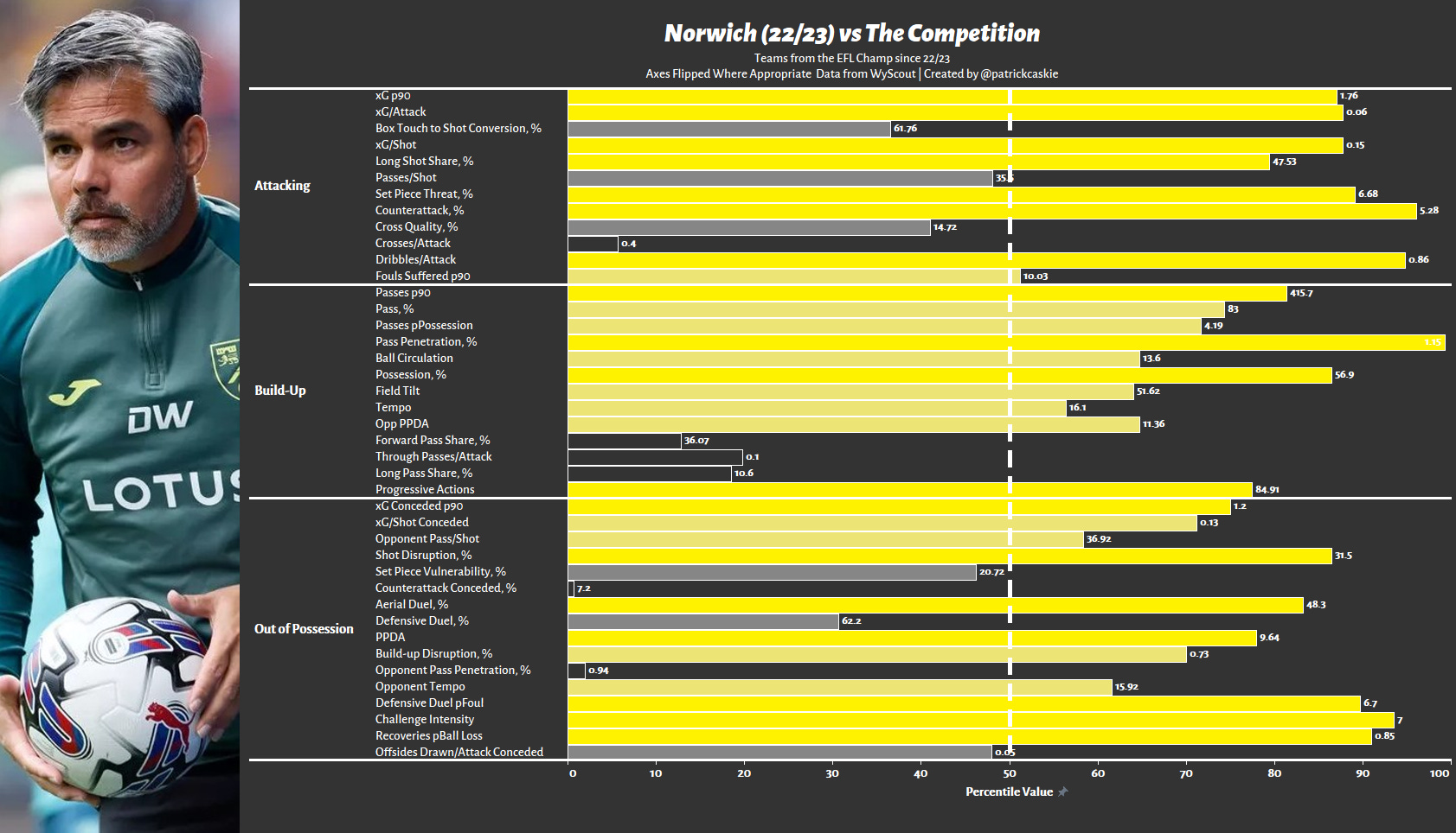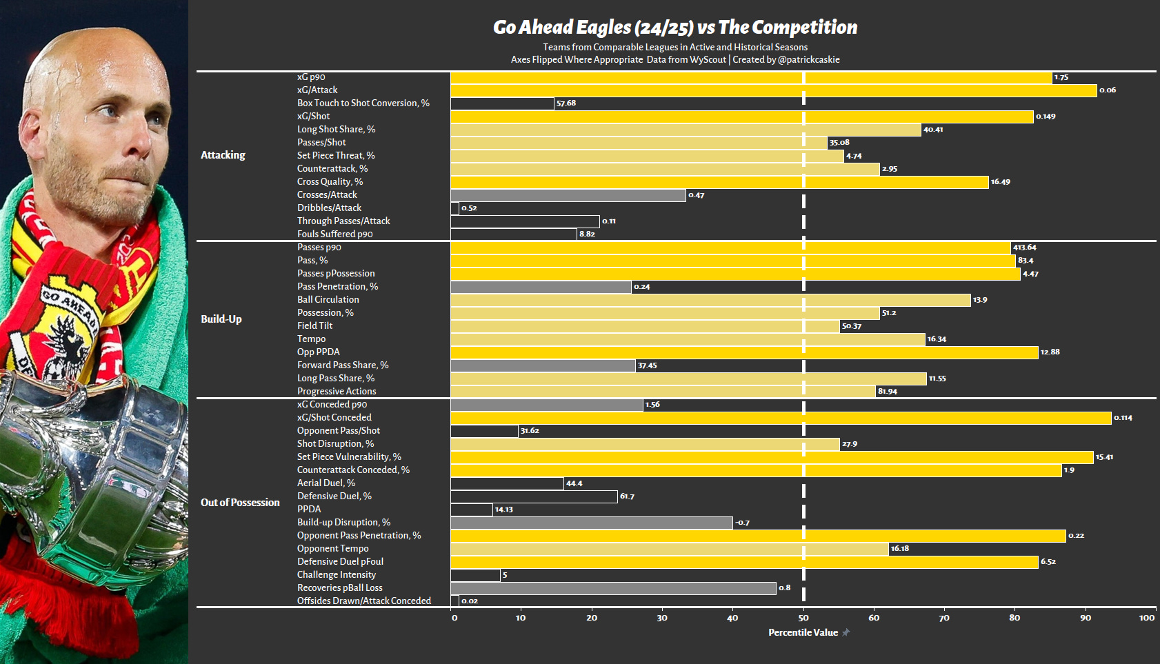 Go Ahead’s outstanding attacking output - xG p90, Passes p90, Field Tilt, etc.